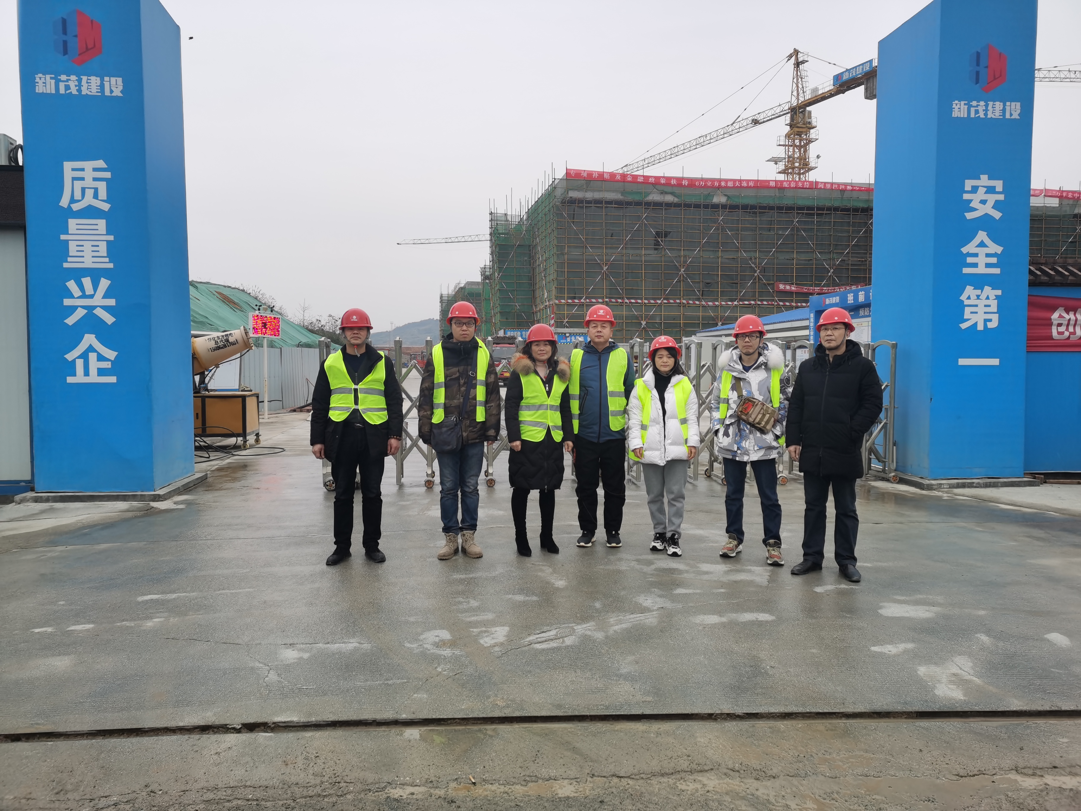2020年12月18日,怀化市副市长邓小健、市建设局领导、市质监站丁站长等在湖南新茂建设有限公司的相关领导陪同下,深入《怀化武陵山中药材及生态农林产品博览城项目》施工现场检查指导解决工作。